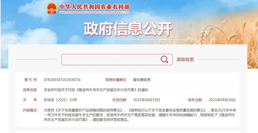 農(nóng)業(yè)農(nóng)村部落實2021年中央一號文件關于積極發(fā)展牛羊生產(chǎn)的要求,促進肉牛肉羊生產(chǎn)高質(zhì)高效發(fā)展,增強牛羊肉供給保障能力,制定了《推進肉牛肉羊生產(chǎn)發(fā)展五年行動方案》(以下簡稱方案),并要求各省抓好貫徹落實。